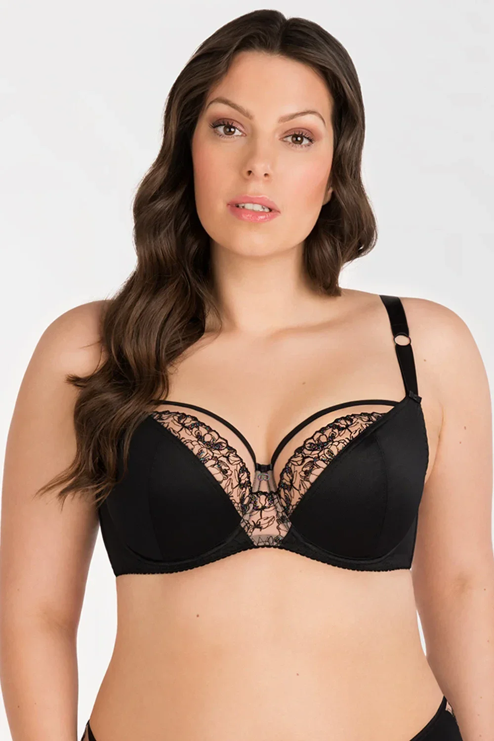 Podprsenka od Gorsenia. Model K101 Zoya. Má dráty, které prsa vhodně tvarují. Svislé velrybí kosti zasazené po stranách. Výrobek má nastavitelné popruhy bez možnosti odepnutí. Kovové háčky na popruh. Podprsenka se zapínáním na háčky a oči. Upevňovací bod: vzadu. Výrobek je vyroben z 90 % z polyamidu, 7 % z elastanu a 3 % z polyesteru. Výrobek pro ženy.