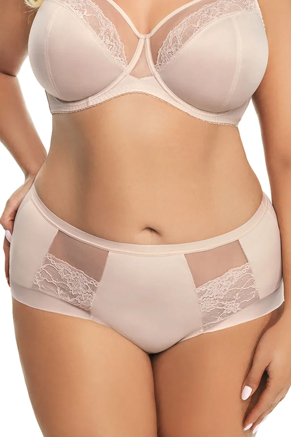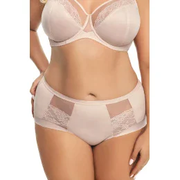 Dámské kalhotky značky Gorsenia. model K442 Luisse. výrobek je vyroben z 90% polyamidu, 7% elastanu, 3% polyesteru. vlastnosti výrobku: elegantní nude maxi velikost. vysoké kalhotky.