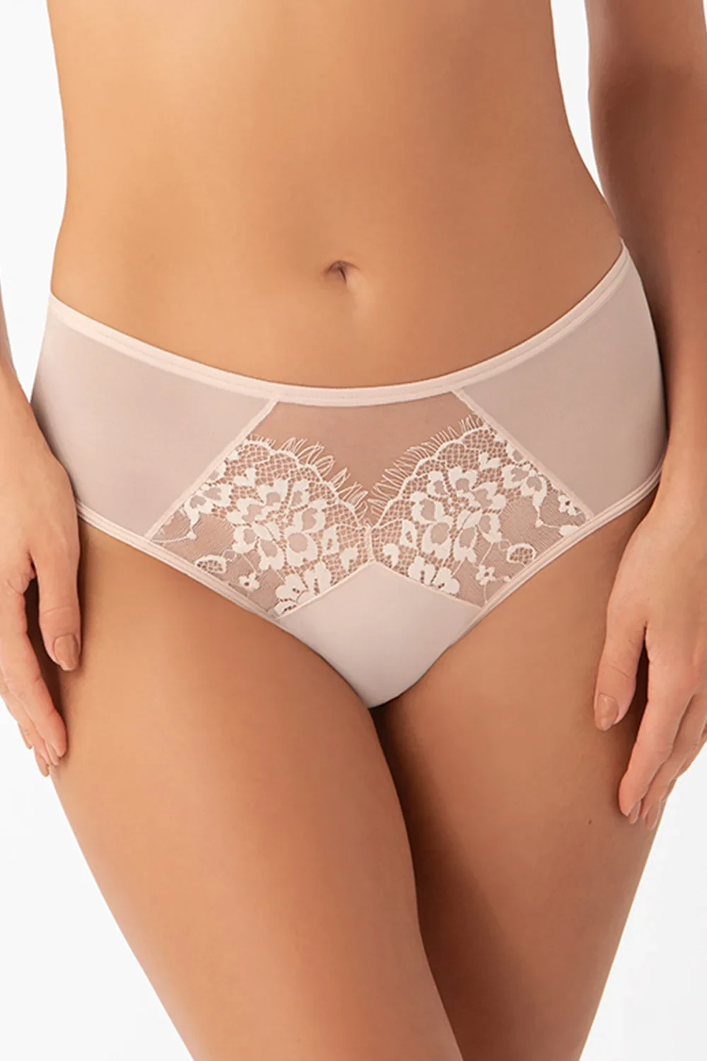 Dámské kalhotky značky Gorsenia, model K649 Alicante. Výrobek je vyroben z 90 % z polyamidu, 7 % z elastanu a 3 % z polyesteru. Dámské kalhotky s vysokým sedem.