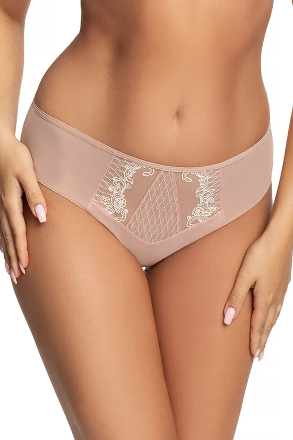 Kalhotky značky Gorsenia. model K691 Blanche. výrobek je vyroben z 90% polyamidu, 7% elastanu, 3% polyesteru. dámský výrobek. má kapsy. klasické kalhotky.