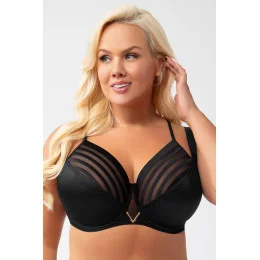 Podprsenka od Gorsenia. Model K810 Yoko. Má dráty, které prsa vhodně tvarují. Svislé velrybí kosti zasazené po stranách. Výrobek má nastavitelné popruhy bez možnosti odepnutí. Kovové háčky na popruh. Podprsenka se zapínáním na háčky a oči. Upevňovací bod: vzadu. Výrobek je vyroben z 90 % z polyamidu, 7 % z elastanu a 3 % z polyesteru. Výrobek pro ženy.