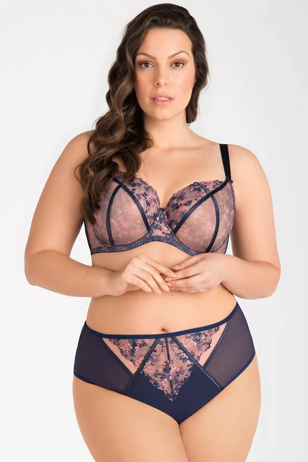 Podprsenka od Gorsenia. Model K820 Edna. Má dráty, které prsa vhodně tvarují. Svislé velrybí kosti zasazené po stranách. Výrobek má nastavitelné popruhy bez možnosti odepnutí. Kovové háčky na popruh. Podprsenka se zapínáním na háčky a oči. Upevňovací bod: vzadu. Dvě řady svislých háčků. Tři stupně horizontálních háčků. Výrobek je vyroben z 90 % z polyamidu, 7 % z elastanu a 3 % z polyesteru. Výrobek pro ženy.