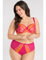 Podprsenka značky Gorsenia, model K858 Show Time, má drátky, které podpírají a tvarují prsa, svislé velrybí kostice na bocích, nastavitelná ramínka bez možnosti odepnutí, kovové háčky na ramínkách, zapínání na háčky a očka, zadní díl, vyrobeno z 90% polyamidu, 7% elastanu, 3% polyesteru, ženská barva.