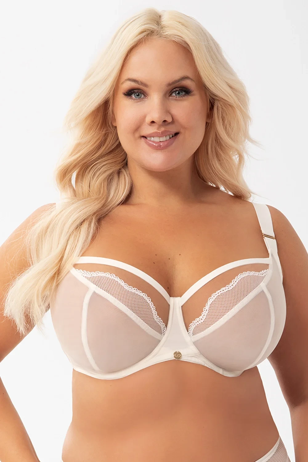 Podprsenka Gorsenia, model K900 Ida, s drátky, které podporují a tvarují prsa, svislé velrybí kostice na bocích, nastavitelná ramínka, kovové háčky, zapínání na háčky a oči, zadní díl, vyrobeno z 90% polyamidu, 7% elastanu, 3% polyesteru, ženská barva.