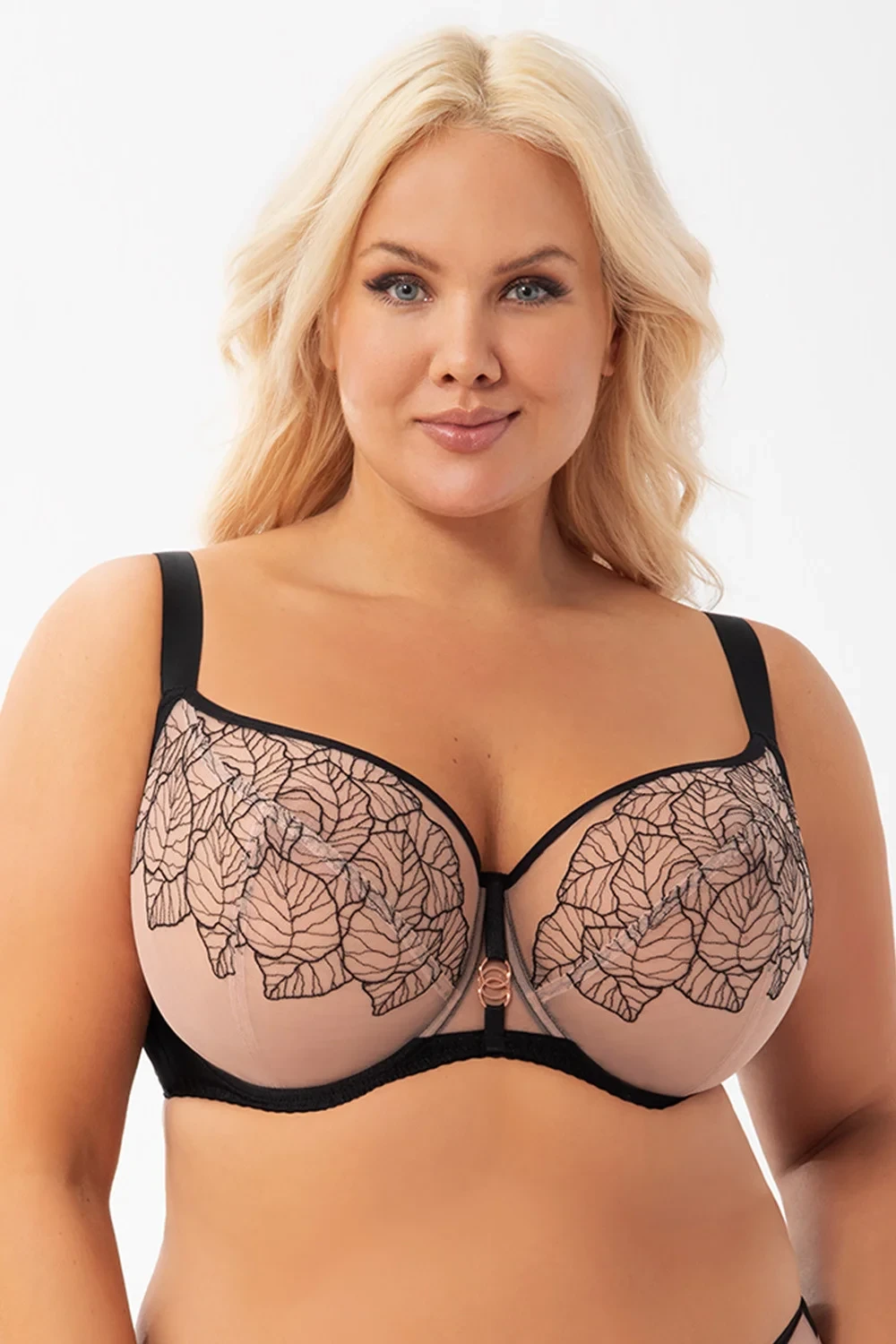 Podprsenka značky Gorsenia, model K924 Palmira, má drátky, které podpírají a tvarují prsa, svislé velrybí kostice na bocích, nastavitelná ramínka bez možnosti odepnutí, kovové háčky na ramínkách, zapínání na háčky a očka, zadní díl, vyrobeno z 90% polyamidu, 7% elastanu, 3% polyesteru, ženské provedení.
