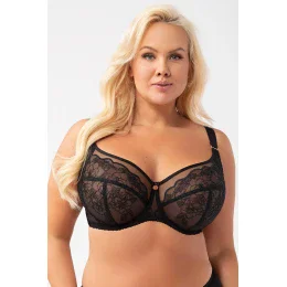 Podprsenka značky Gorsenia, model K930 Adore, má drátky, které podporují a tvarují prsa, svislé velrybí kostice na bocích, nastavitelná ramínka, která nelze odepnout, kovové háčky na ramínkách, zapínání na háčky a očka, zadní díl, vyrobeno z 90 % polyamidu, 7 % elastanu, 3 % polyesteru, ženská barva.