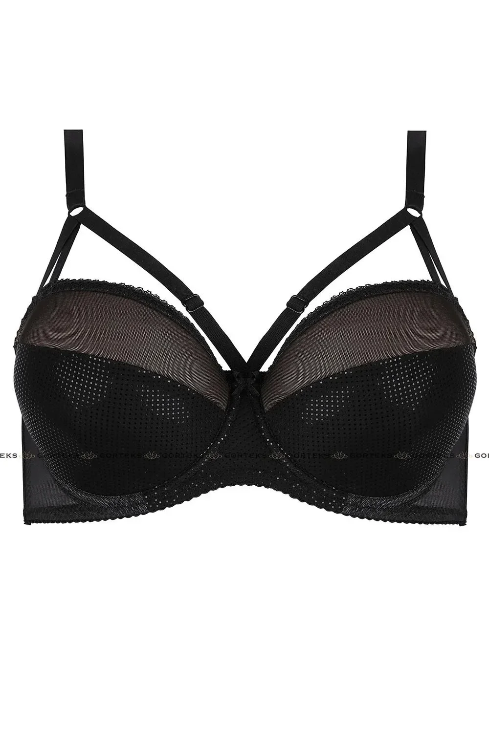 Podprsenka značky Gorteks, model Celine/B4. Má drátky, které podpírají prsa a správně je tvarují. Svislé velrybí kostice na bocích. Výrobek má nastavitelná ramínka bez možnosti jejich odepnutí. Háčky k ramínkům jsou kovové. Podprsenka se zapíná na háčky. Místo zapínání: vpředu. 2 řady svislých háčků. 3 stupně vodorovných háčků. Výrobek je vyroben z 65 % polyamidu, 20 % polyesteru, 10 % bavlny, 5 % elastanu. Vlastnosti výrobku: sexy s módními ramínky.