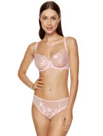 Podprsenka značky Gorteks, model Coco/B2, má drátky, které podporují a tvarují prsa, svislé velrybí kostice na bocích, nastavitelná ramínka bez možnosti odepnutí, kovové háčky na ramínkách, zapínání na háčky na zádech, dvě řady svislých háčků, tři řady vodorovných háčků, vyrobená ze 70 % polyamidu, 25 % polyesteru, 5 % elastanu, dámská.