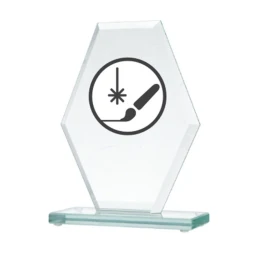Skleněná trofej s gravírováním + náplní barvy , V - 26 cm