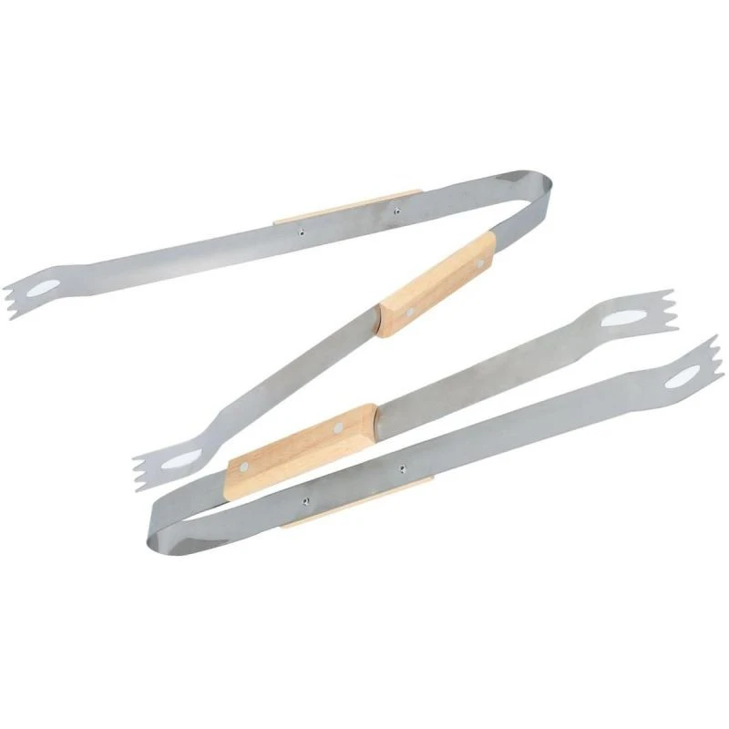 Kleště mají dlouhé rukojeti s dřevěnými úchyty, které vám umožní udržovat bezpečnou vzdálenost od horkého grilu a ochrání vás před možným popálením.