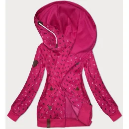 Růžová hrubší mikina se šikmým zipem a se vzorem kotev (2308)