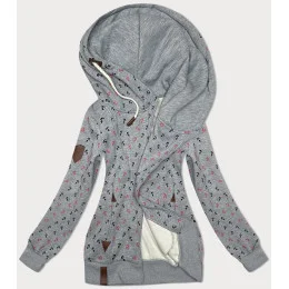 Šedá hrubší mikina se šikmým zipem a se vzorem kotev (2308)