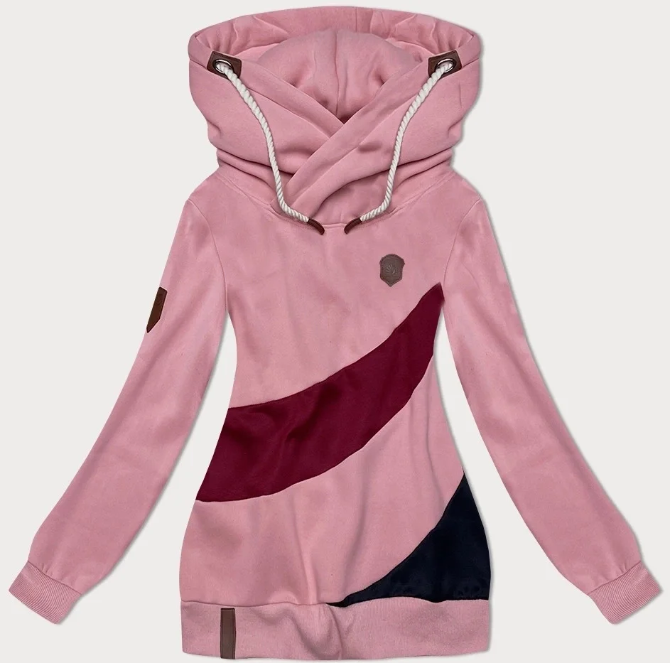 Růžovo-bordó hrubší dámská mikina s pruhy (2302)