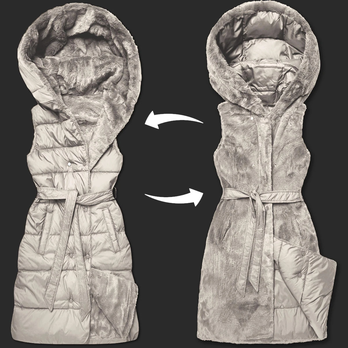 Béžová hrubší oboustranná péřovo-kožešinová vesta Minority (P3-6035-62)