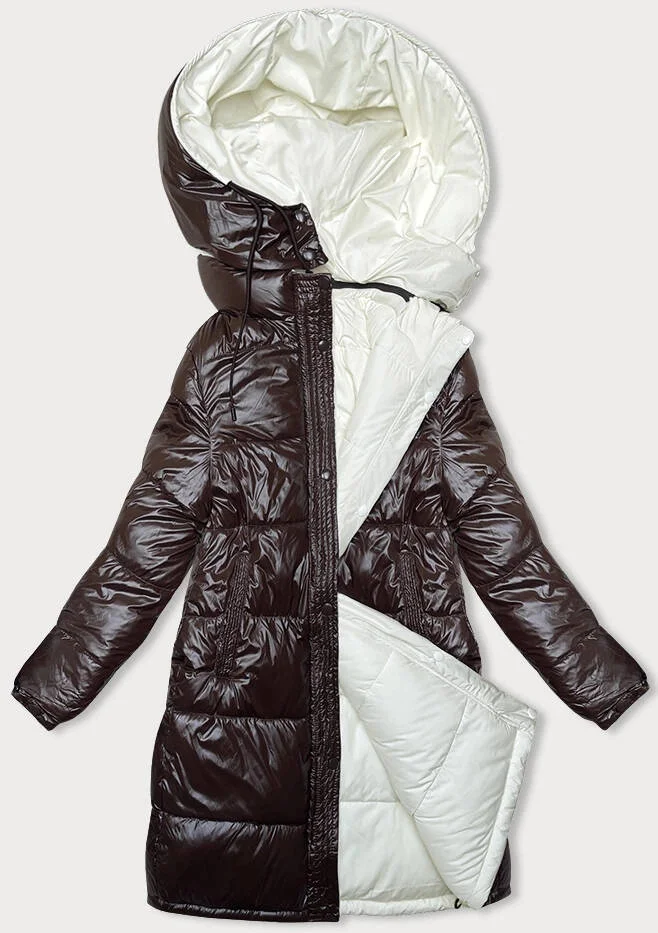 Hnědo-ecru hrubší oboustranná dámská zimní bunda (V767)