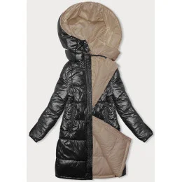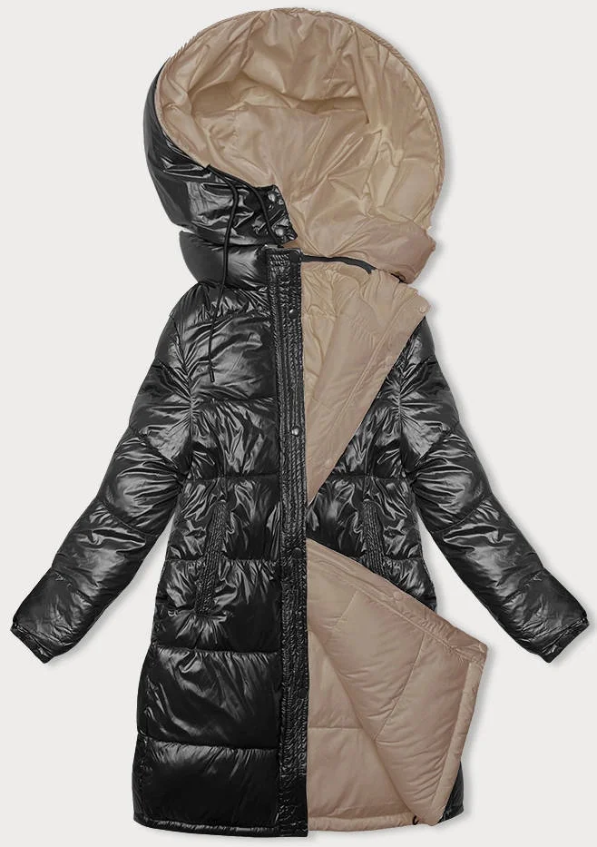 Černo-béžová hrubší oboustranná dámská zimní bunda (V768g)