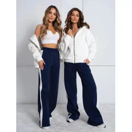 Bílo-tmavě modrý hrubší dámský bavlněný komplet s rozepínací mikinou (503)