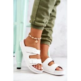 Nazouvací pantofle vyrobené z pryžového materiálu. Jsou nasazeny na ploché, silnější podrážce. Vpředu mají dva nastavitelné popruhy s přezkou. Vybaveno profilovanou vložkou s logem. Vytvoříte s nimi mnoho úžasných letních stylů! Ideální také na doma místo pantoflí. Rozhodně byste je měli mít! Při výběru velikosti použijte tabulku velikostí.