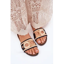 Háčkované Dámské Pantofle Na Plochém Podpatku Černé Nirina