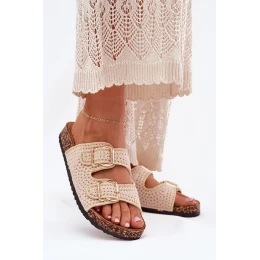 Háčkované dámské pantofle se zlatými přezkami béžové Fenira