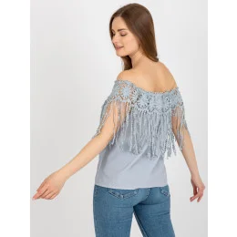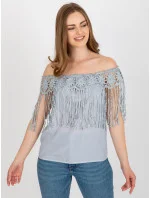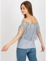 Šedá dámská pruhovaná halenka s třásněmi .