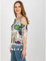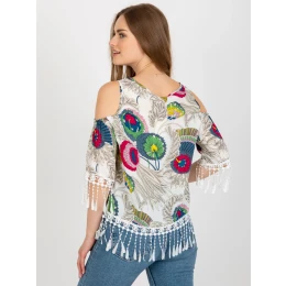 Rozměry halenky v jedné velikosti měřené na plocho: šířka v podpaží - 51 cm, délka rukávu - 40 cm, celková délka - 64 cm.