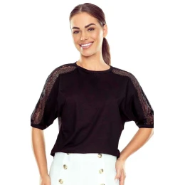 Halenka Atila s 3/4 rukávy je elegantní a všestrannou volbou pro ženy, které ocení kombinaci klasiky s jemnými, ženskými detaily. Model je vyroben z vysoce kvalitní, měkké a elastické viskózy, která se dokonale přizpůsobí postavě a zajišťuje pohodlí při nošení po celý den. Klasický kulatý výstřih dodává halence nadčasový charakter, zatímco výrazné krajkové vsadky na ramenou a rukávech upoutají pozornost a dodávají celku eleganci. Díky rukávům v délce nad lokty je halenka Atila ideální jak pro kancelářské stylizace, tak pro schůzky nebo zvláštní příležitosti. Je ideální volbou pro ženy, které hledají stylovou halenku, která kombinuje pohodlí s elegantním vzhledem.