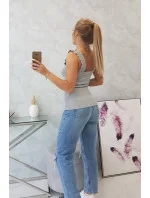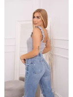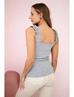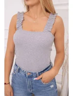 Halenka bez ramínek s volánky šedá