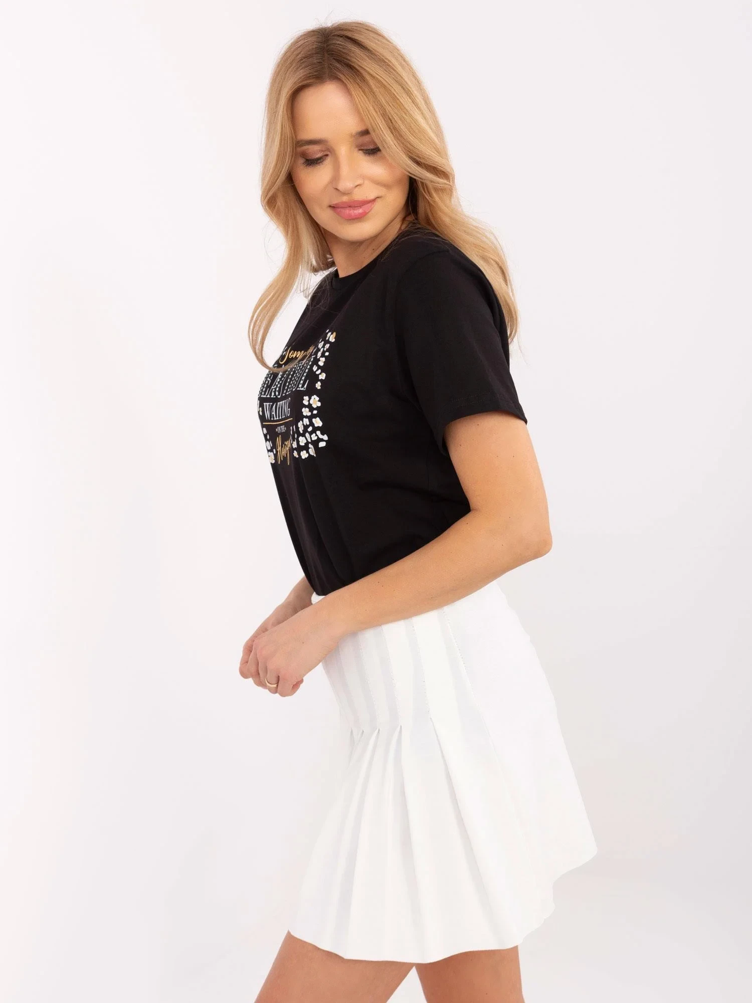 Modelka má na sobě velikost S. Rozměry modelky: výška 175 cm, prsa 90 cm, pas 66 cm, boky 94 cm.