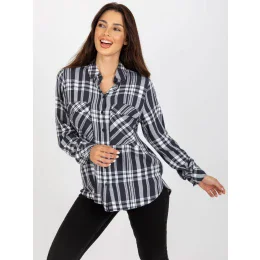 Tmavě šedá dámská kostkovaná košile z viskózy .
