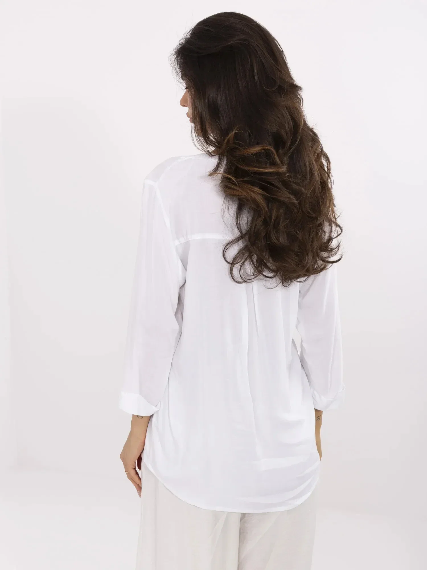 Rozměry halenky v jedné velikosti měřené na plocho: šířka v podpaží - 56 cm délka rukávu - 46 cm (od švu), celková délka - 68 cm (vpředu), celková délka - 72 cm (vzadu), šířka v bocích - 59 cm.