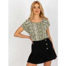 Khaki vzorovaná halenka s krátkým rukávem PODLE ÚROVNĚ .