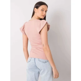 Špinavě růžová halenka se šněrovacím výstřihem.
