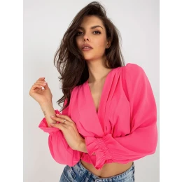 Fluo růžová společenská halenka s buffovými rukávy .