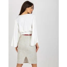 Ecru krátká společenská halenka s plisovanými rukávy .
