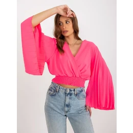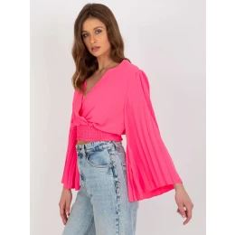 Fluo růžová společenská halenka s obálkovým výstřihem .