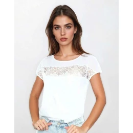 - výstřih, záda v horní linii a rukávy z tylové síťoviny a vsadky z krajky s květinovým motivem