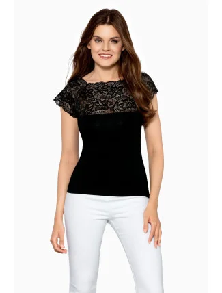 Ideální pod všechny podzimně-zimní svetry nebo jako samostatný kousek šatníku. Přiléhá k tělu, pružné, elegantní. Výstřih je pěkně řešený a bohatě zdobený krajkou. Polský výrobce. 94 % viskóza, 6 % elastan.