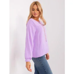 Světle fialová volná společenská halenka s řetízkovými detaily.