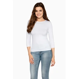 Tato všestranná halenka se dodává v různých barvách a je ideálním základem pro různé outfity, od ležérních, ideálních pro každodenní nošení, až po doplnění saka, když chcete jít do práce. Měkká bavlna vynikající kvality umožňuje, aby halenka měkce a příjemně seděla. Klasický výstřih, módní rukávy v délce 3/4. 94 % bavlna, 6 % elastan.