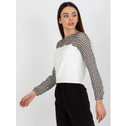 Ecru-černá dámská společenská halenka s dlouhými rukávy .