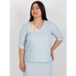 Světle modrá plus size halenka s krátkými rukávy .