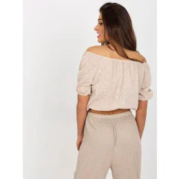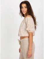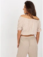 Béžová krátká pruhovaná halenka s prolamovaným vzorem .