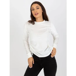 Dámská velurová halenka v barvě ecru s žebrovanými manžetami .