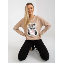 Béžový dámský klasický svetr s flitrovou aplikací .