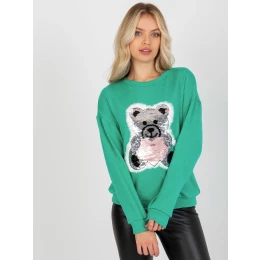 Tyrkysový dámský klasický svetr s flitrovou aplikací .