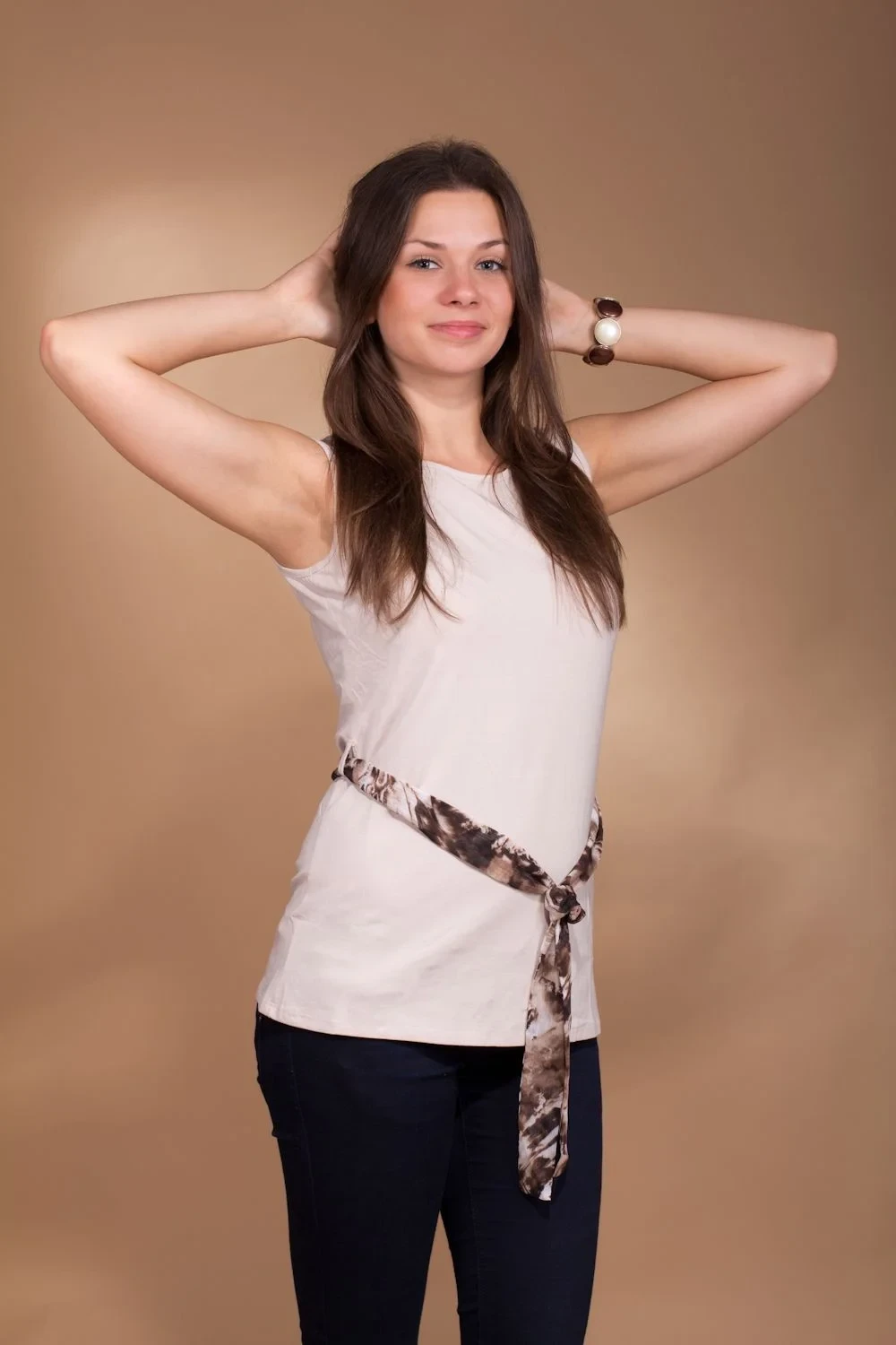 Mírně delší hladká halenka se stylovým vzorovaným (odnímatelným) páskem. Opticky prodlužuje siluetu díky svému prodlouženému tvaru. Pásek můžete uvázat volně na uzel nebo koketně s mašlí. V každé podobě se stane skutečnou ozdobou, která obohatí styling. Ideální k džínům, legínám i kalhotám. Tvarovaný pas, polský výrobce. Složení: 95% viskóza, 5% elastan.