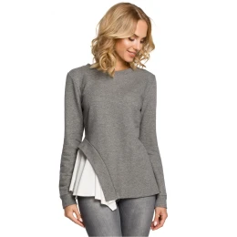 Hledáte jedinečnou halenku? Tato zajímavě střižená halenka s asymetricky střiženými boky a ušitá z kombinace dvou materiálů, měkkého žebrovaného úpletu a vzdušné látky, jistě splní vaše očekávání. Halenka s dlouhými rukávy ideální pro mnoho příležitostí.