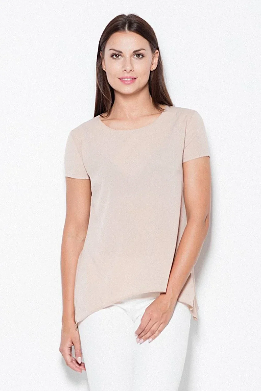 Jednoduchá halenka s prodlouženými boky. Vyrobeno z lehkého a vzdušného materiálu. Ideálně se hodí k těsným kalhotám.