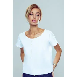 Okouzlující hladká halenka s krátkými rukávy a svůdným rozparkem na zádech. Vrchní část je zvýrazněna malou sladkou saténovou mašlí. Měkká a kvalitní tkanina.